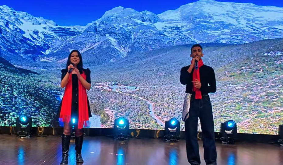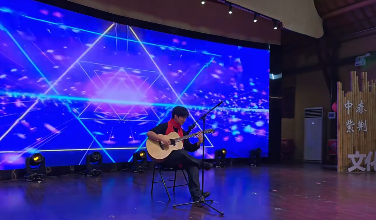 晚会现场,中华传统文化与异域风情交相辉映。越剧《梁祝》婉转悠扬,笛子合奏《哪吒》《扬鞭催马》激昂奋进,太极水墨扇刚柔并济。而当哈萨克斯坦学生鲁斯兰拨动吉他琴弦,俄罗斯的汐明、乌兹别克斯坦的美琳、也门的金沙联袂献唱《Faded》时,流行旋律与中国乡村舞台激情碰撞,现场掌声雷动,文化交融的火花熠熠生辉。