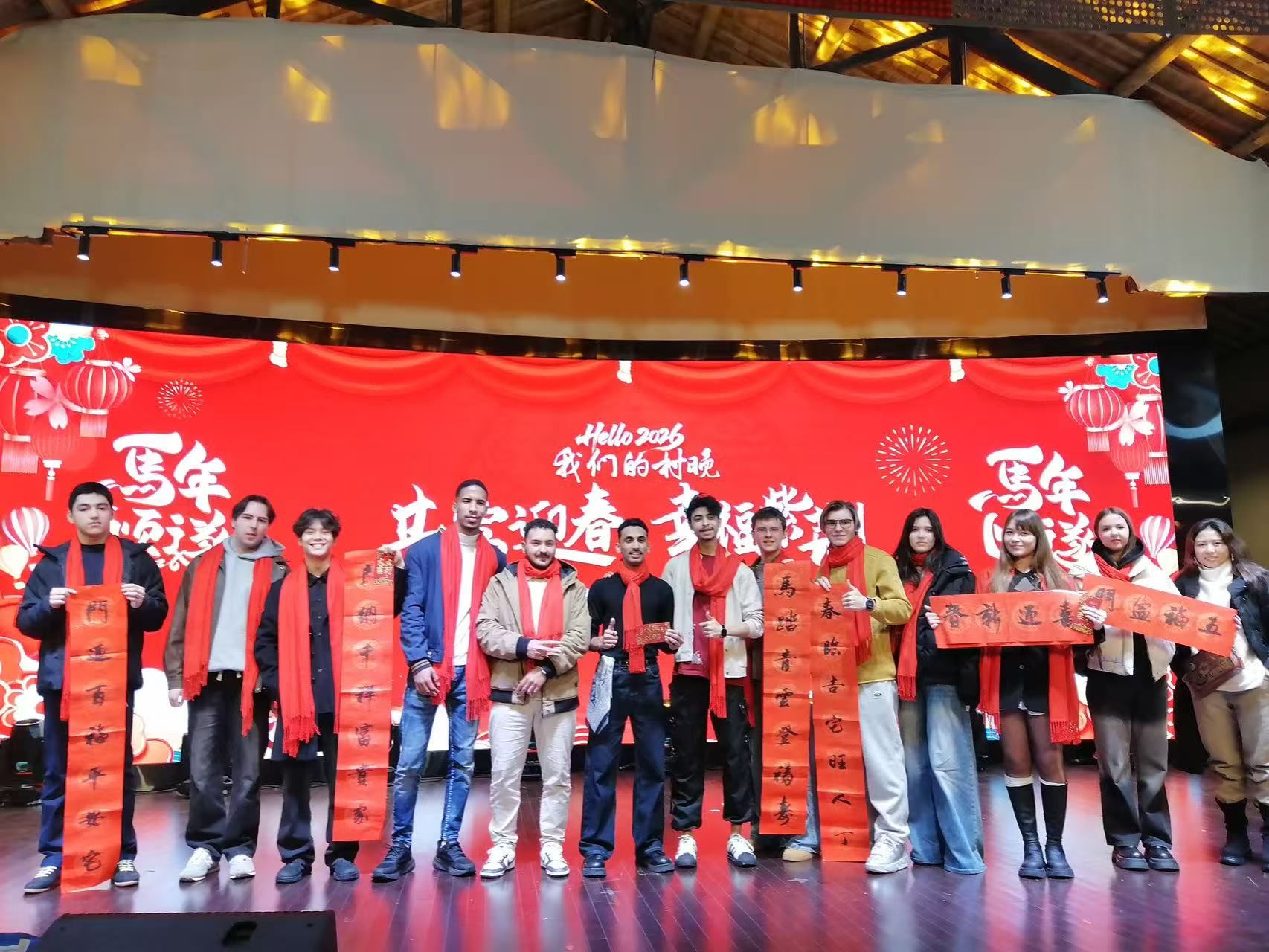 2月5日晚,杭州余杭区中泰街道紫荆村灯火璀璨、笑语盈盈,“共富迎春·幸福紫荆”2026年农村村晚在浓郁的年味中温情上演。我校国际学院来自俄罗斯、越南、哈萨克斯坦、也门、摩洛哥、尼日利亚等10余国留学生与当地村民同台献艺,呈现了一场洋溢着共富情怀、乡土特色与文化交融的新春盛宴。
