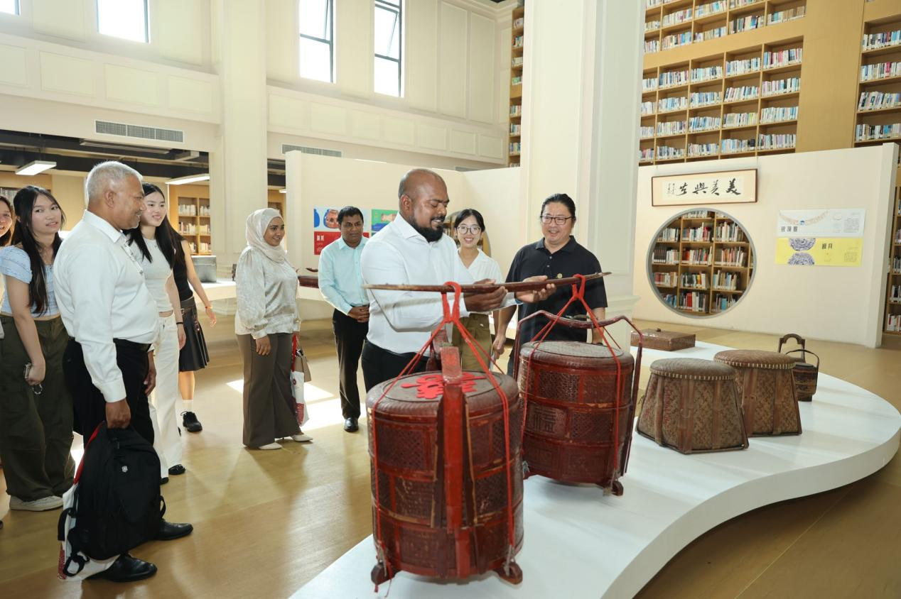 After the ceremony, the delegates toured the folk artifact exhibition. A highlight came when the curator from ZISU’s School of Art mentioned that Chinese celadon reached the Maldives via the Maritime Silk Road, as the visitors shared photos from their mobile phones of Chinese porcelain shards unearthed in Maldivian museums. This photo sharing turned "civilizational mutual learning" into an interesting dialogue on cultural communication. Reflecting on the event, ZISU English junior Zhang Linna wrote in her notes: "This experience showed me that civilizational exchange isn’t just a grand concept - it lives in every eye contact and sincere conversation."