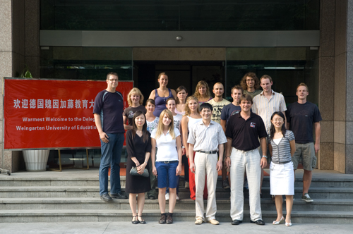 新闻链接:2004年7月,我校与德国魏因加藤教育大学签订了校际合作协议。五年来,两校本着“服务师生、服务教育”的意愿,共同致力于开发实效性、长效性项目。迄今为止,我校已有10名学生赴德进行为期五个月左右的交换学习,5名教师赴德参加为期两周至三个月不等的专业交流(另有2名教师即将派出)。魏因加藤教育大学除对等派出外,已组织3个师生团组共37人来我校访问交流。