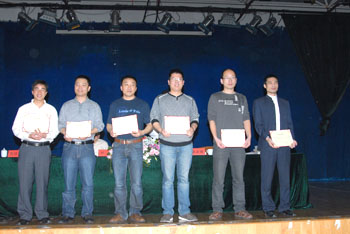 我校2009年第一期“领雁工程”省级骨干校长、骨干教师培训班学员在经过了为期两个月的培训后圆满完成了学习任务,顺利结业。2009年4月24日上午,教师教育与管理学院负责人在结业典礼上为小学校长一班、二班、初中语文、英语、科学、小学语文各学科310名学员颁发了结业证书。本次培训理论与实践并重,包括了通识培训、学科教育理论培训和实践培训三个阶段;培训以提高实效性为出发点,做到既考虑“领雁工程”培训对象的共性,又照顾不同学科之间的差异性,在坚持共同的通识培训的基础上,不同学科分别采取不同的培训方式和培训内容。培训受到了学员们的欢迎,收到了良好效果。