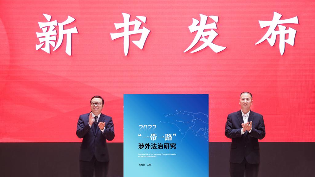 会上举行了《“一带一路”涉外法治研究(2022)》新书发布仪式。陆剑锋和许惠春共同为新书揭幕。李安向“一带一路”律师联盟杭州中心、北京大成(杭州)律师事务所赠送新书。人民出版社法律编审茅友生通过视频致辞,他表示,《“一带一路”涉外法治研究》2022年卷积极回应涉外法治与全面扩大开放之间的重大关系命题,突出体现了政治站位高、学术原创性强、应用针对性宽的特点,展示了当代国际法学界专家学者的学术担当。
