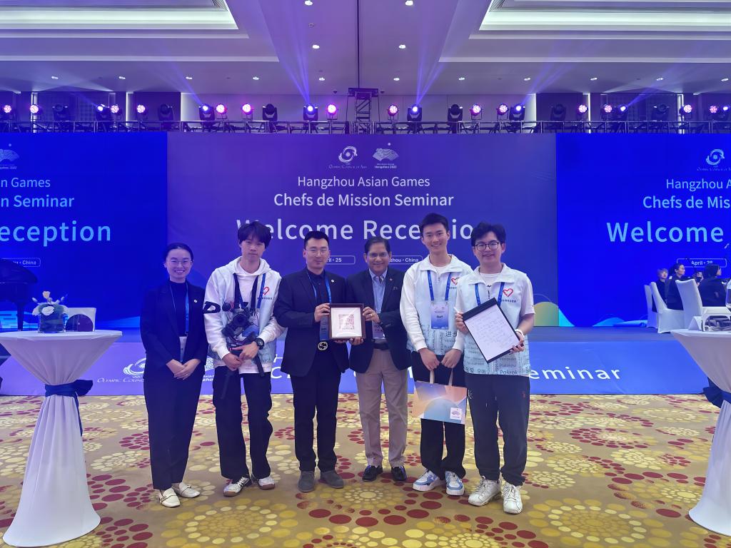 晚宴期间,浙外志愿者向亚奥理事会国际和NOC部主任维诺德赠送银箔画,附信表达了浙外对他的美好祝福。维诺德在收到银箔画后现场手写感谢信,感谢浙外志愿者提供的优质服务和热情笑容。