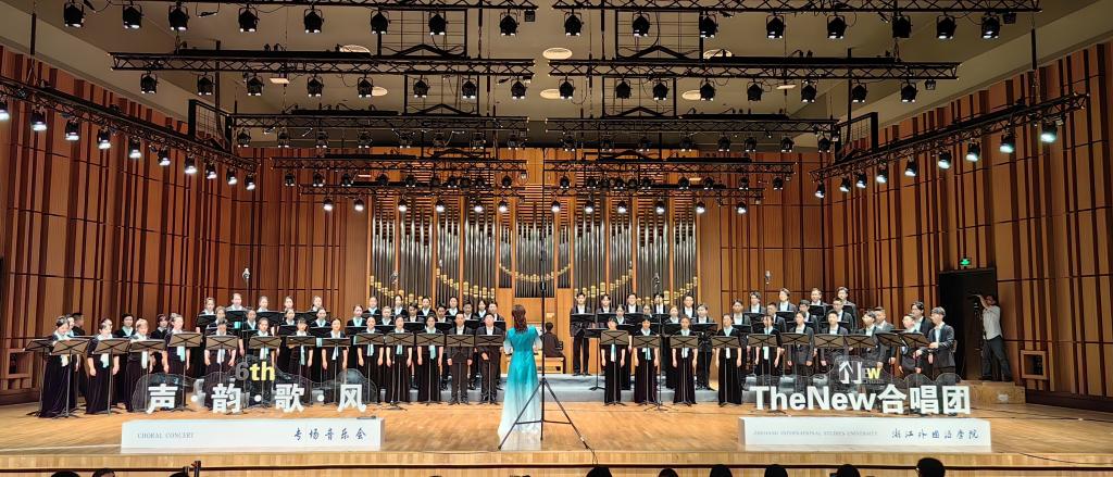 近日,浙外TheNew合唱团“声·韵·歌·风”(第6季)专场音乐会在浙江音乐学院标准音乐厅公演,以管风琴和人声结合的方式展示了古典与现代融合的无限魅力。校党委书记宣勇,党委副书记赵文波,副校长、党委委员、组织部、统战部部长徐勇出席观看演出。