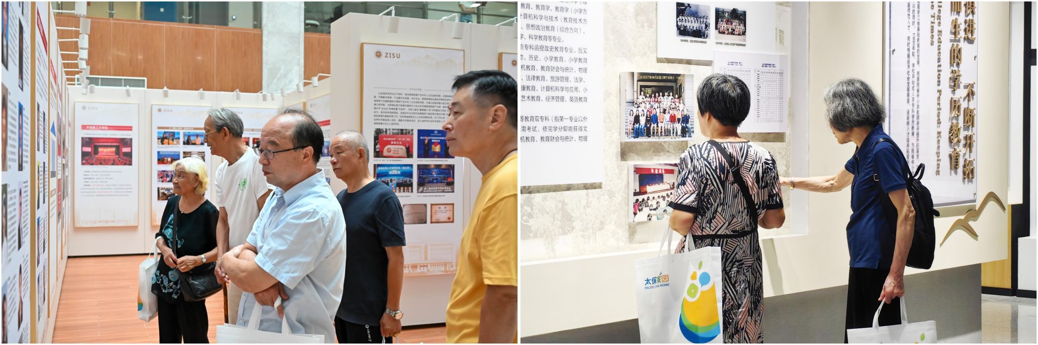 会后,离退休老领导老同志们徜徉在学校山水草木、楼宇亭台之中,参观了校史馆、办学成果展、科研成果展,以及学校三期工程项目。