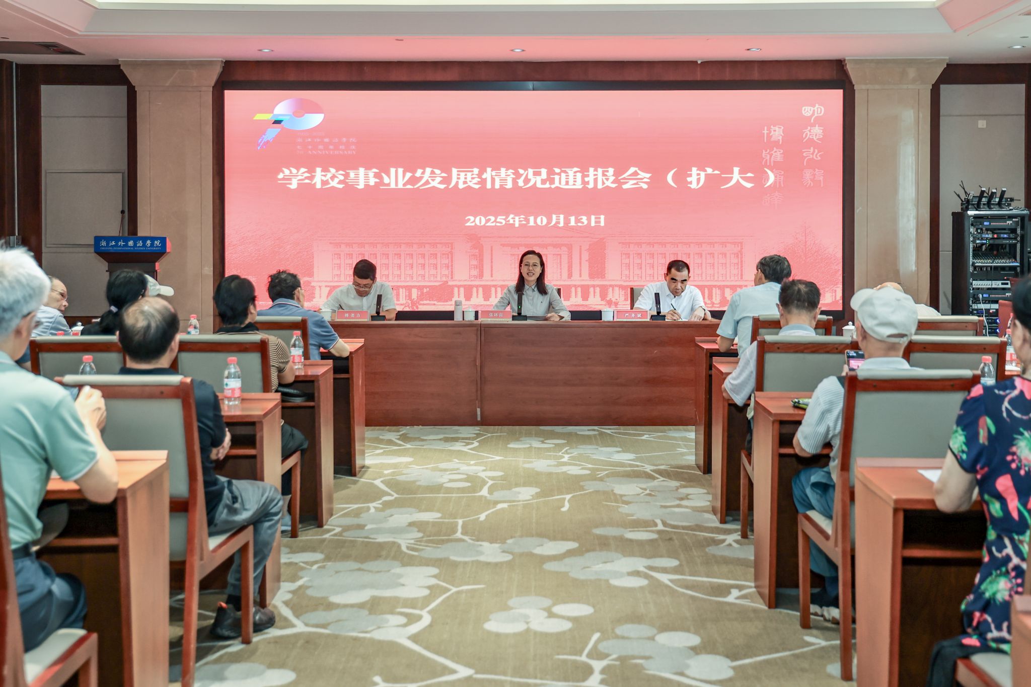 金桂盈香满庭芳,层林尽染醉秋光。10月13日,在重阳节来临之际,学校举办“薪传七秩 爱在重阳”离退休人员返校活动,离退休老领导、老同志欢聚校园,喜迎学校建校70周年,同贺重阳节。校党委书记、校长张环宙出席学校事业发展情况通报会并讲话。校党委副书记严齐斌,党委委员、组织部部长傅尧力出席。