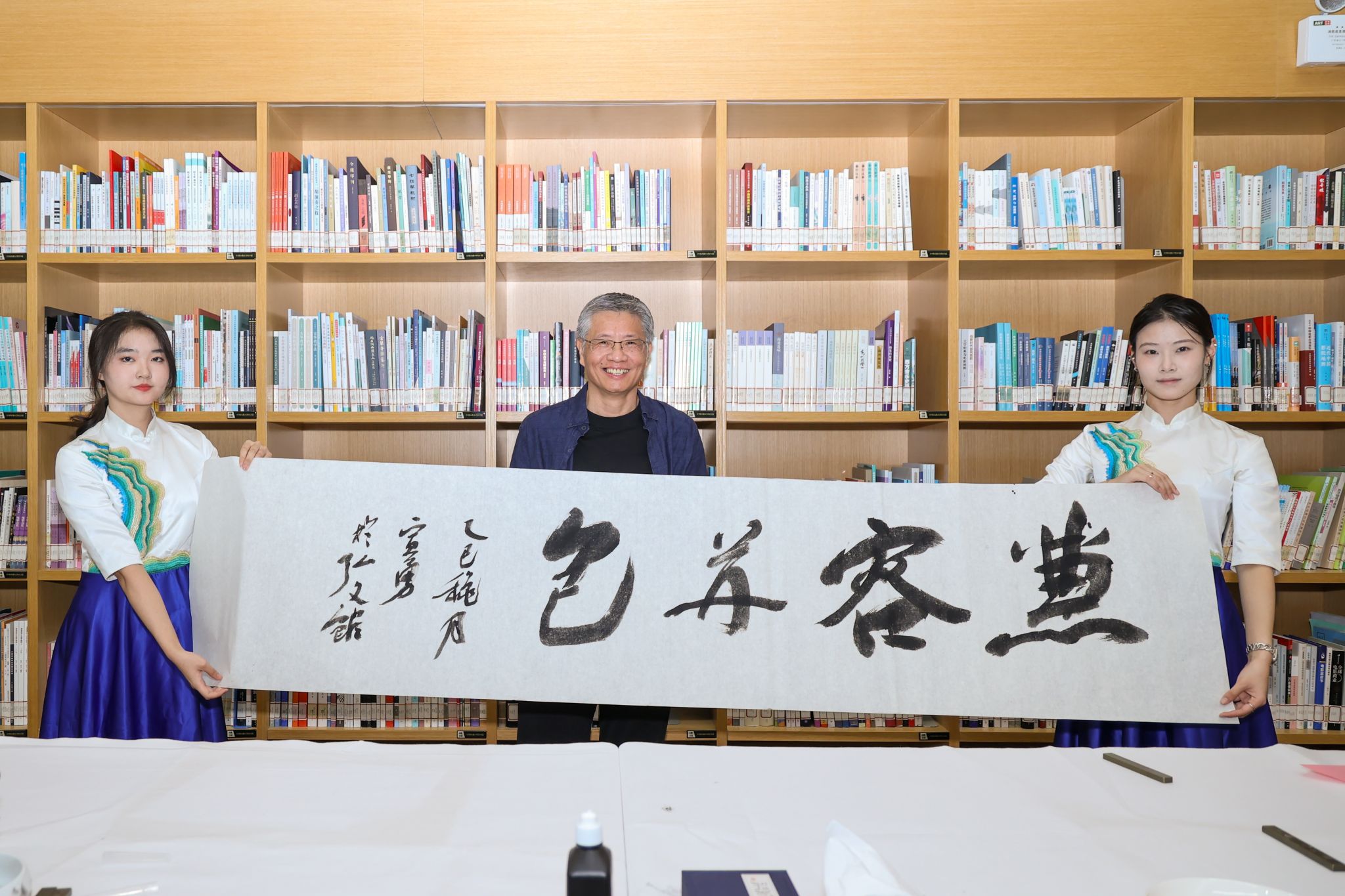 开幕式上,张环宙代表学校为两校书法家代表颁发捐赠证书。