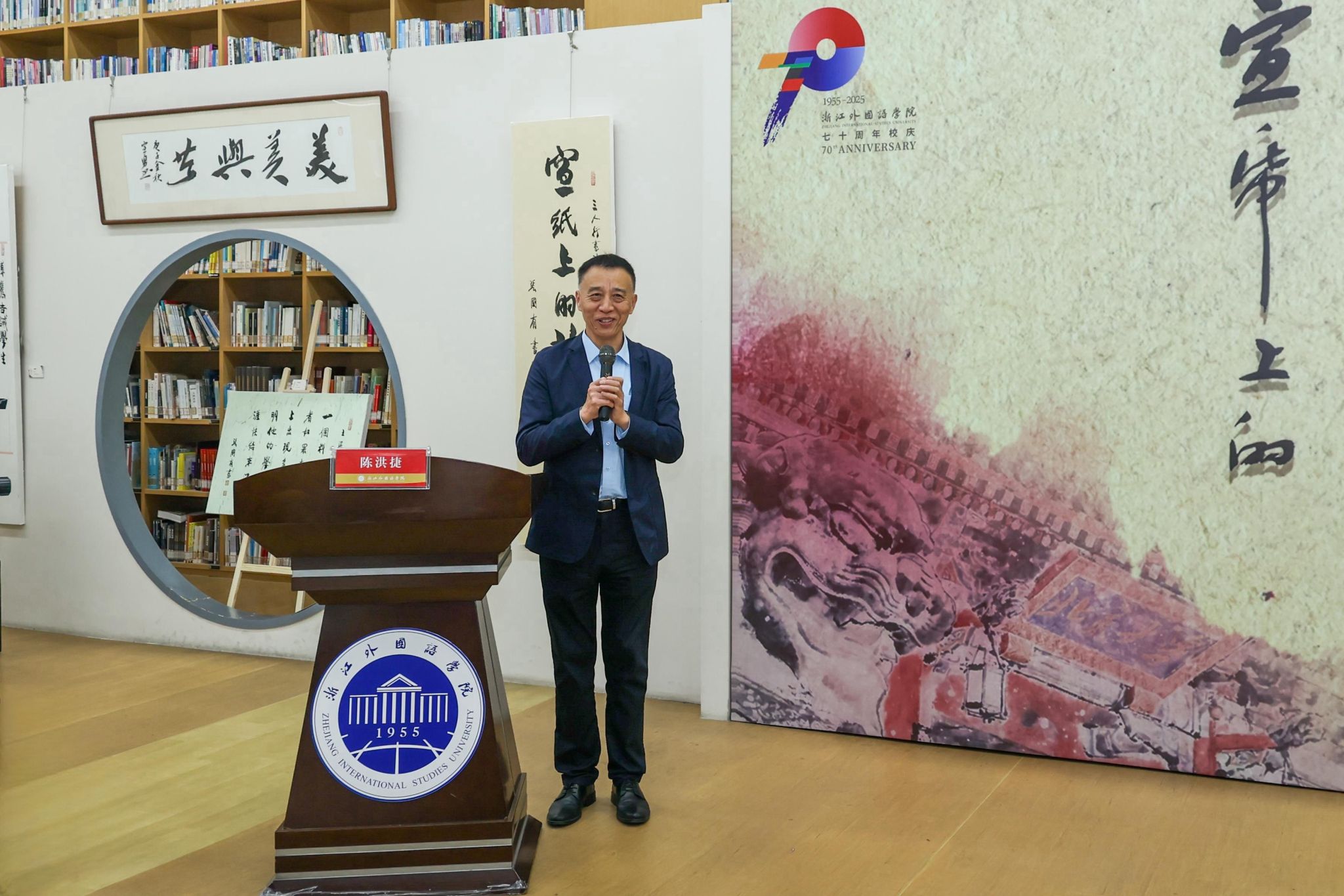 墨韵连两校,文脉续新章。10月14日,“宣纸上的北大与浙外”书法展在学校弘文馆启幕。展览共展出来自北京大学与浙江外国语学院六位书法家的70幅书法作品。本次展览也是浙外建校70周年系列文化活动之一。
