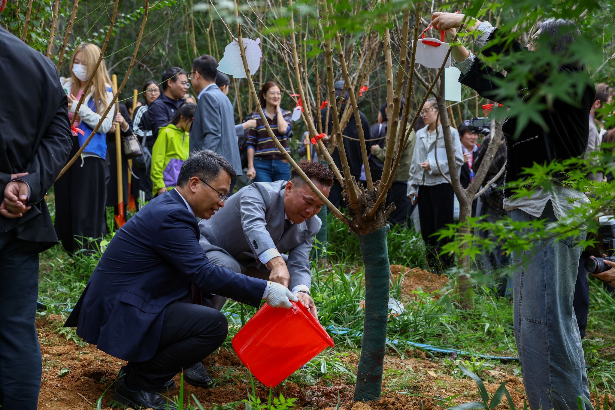 此次校友林认捐种植活动采用“新种树苗+挂牌成品树”相结合的形式,校友们在各学院引导下,或共同栽种新苗,或为成品树挂上铭牌。大家以树为证、以林为约,让校友与母校的情谊随树木一同扎根生长、生生不息。