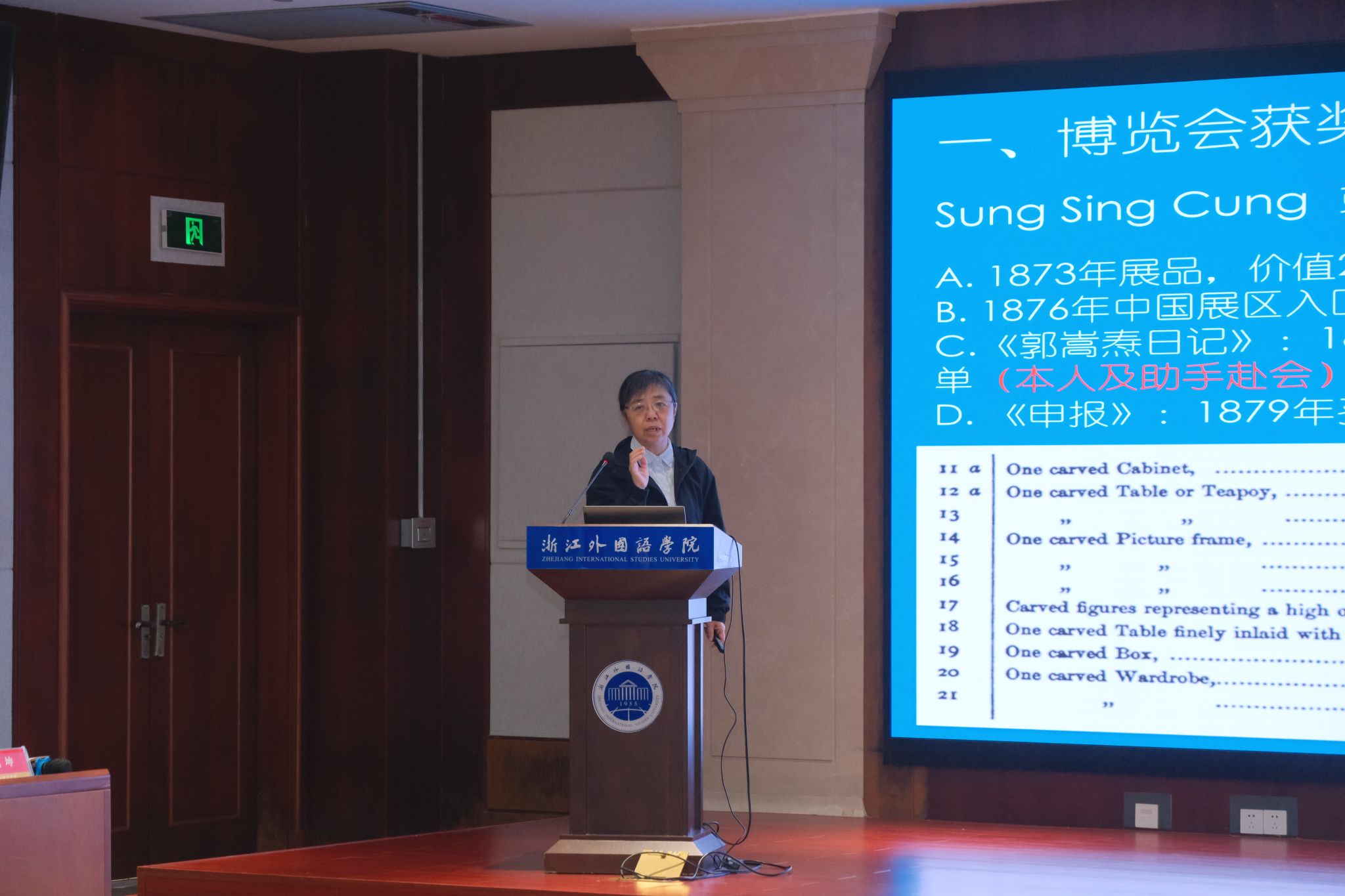 中山大学历史学系李爱丽副教授列举并分析了历次海关组织参加世界博览会的史料,以及从中发掘整理出的一系列近代浙江人物与风物。