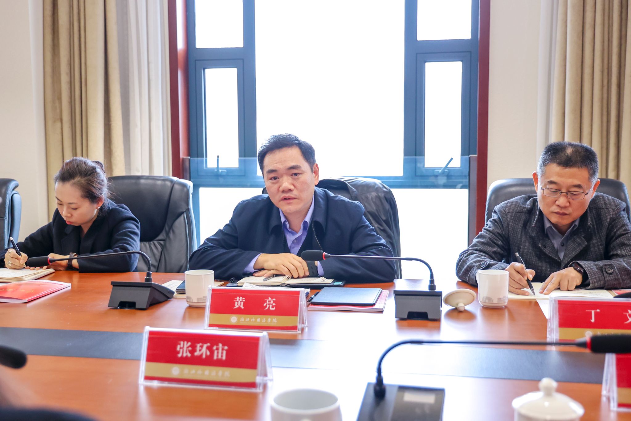 12月12日,浙江外国语学院党委理论学习中心组举行习近平法治思想、习近平总书记关于安全生产的重要论述、省委十五届八次全会精神、意识形态安全等专题学习会。校党委书记、校长张环宙主持,并就学习贯彻习近平法治思想,以高水平安全保障高质量发展提出具体要求。省教育厅党组成员、省教育考试院党委书记黄亮出席并作指导。