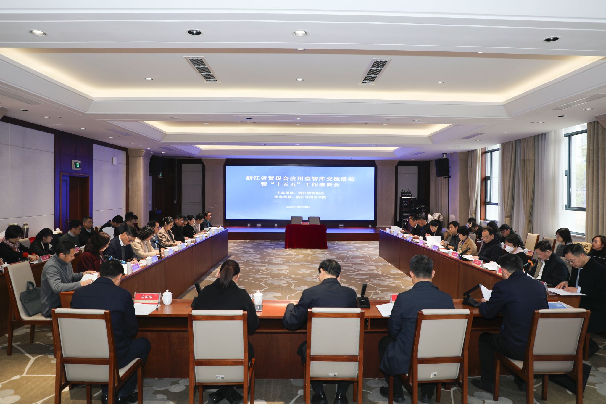 12月23日,由浙江省贸促会主办,浙江外国语学院承办的2025年应用型智库交流活动暨“十五五”工作座谈会在我校召开。省贸促会党组书记、会长陈建忠出席并讲话。浙江外国语学院副校长、党委委员毛振华,省社科联党组成员、副主席屠春飞分别致辞。省贸促会党组成员、副会长应国华、葛咏梅出席会议。