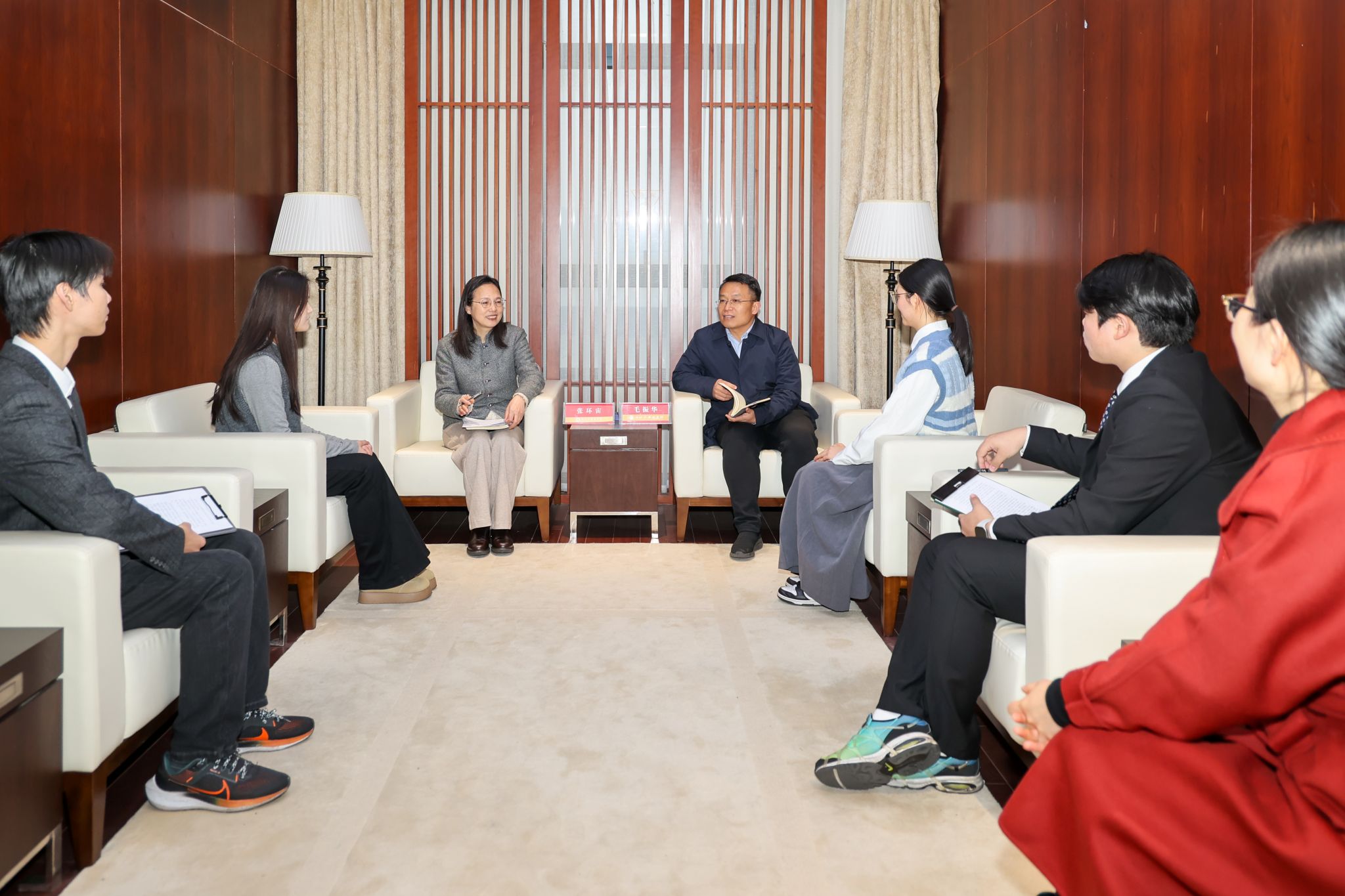 “看到你们青春洋溢的面貌和强国有我的担当,让我感受到了你们对浙外的热爱,以及身为校园治理参与者的主人翁精神!”12月30日,冬夕时分,暖意流淌间,校党委书记、校长张环宙与校第九届学生会主席团成员座谈。副校长、党委委员毛振华主持。