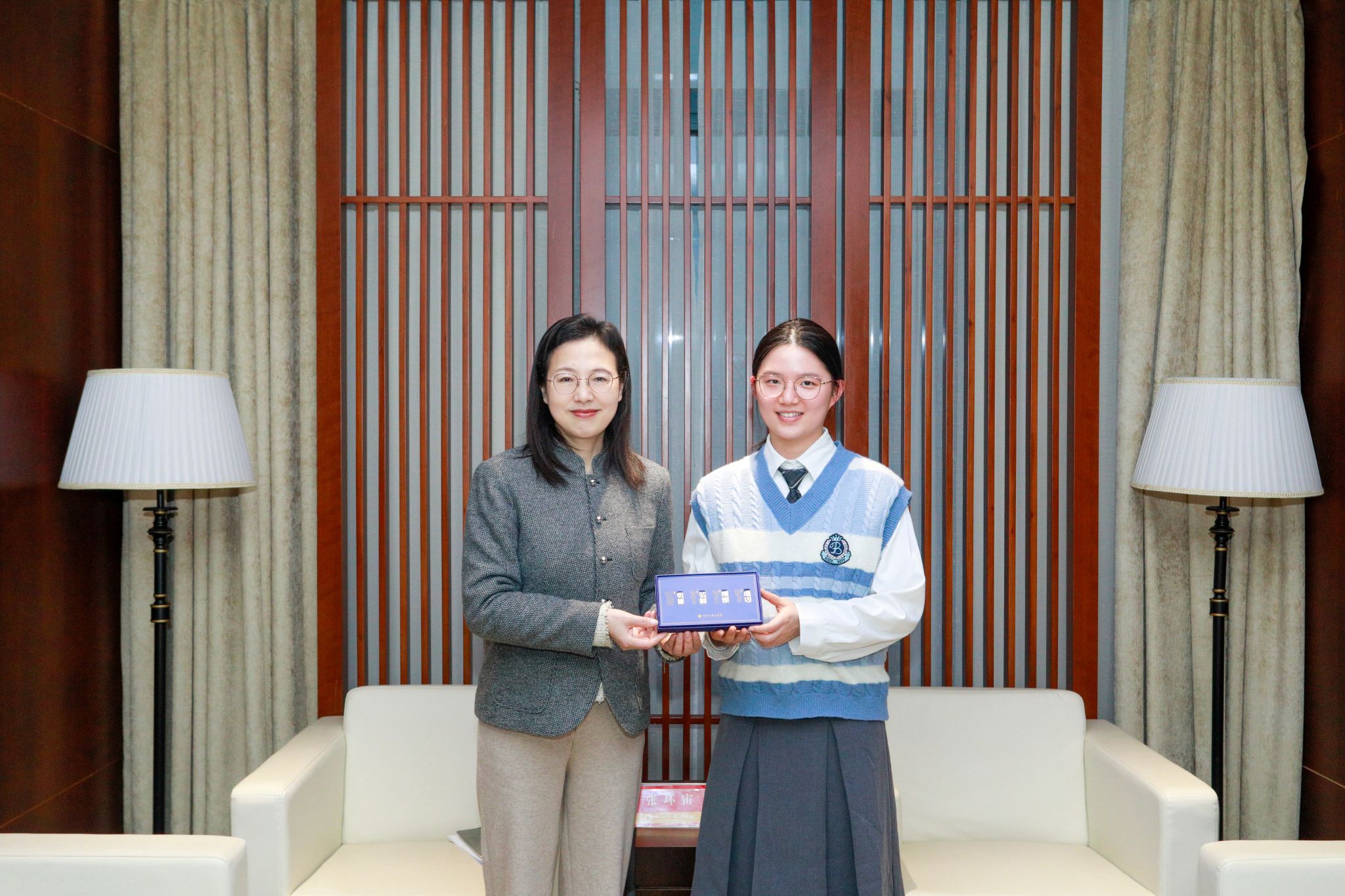 会上,张书记向学生会主席团成员赠送浙外校训主题书签,勉励同学们以校训精神为指引,不负期待、不负韶华,以奋斗的姿态书写美好的青春。