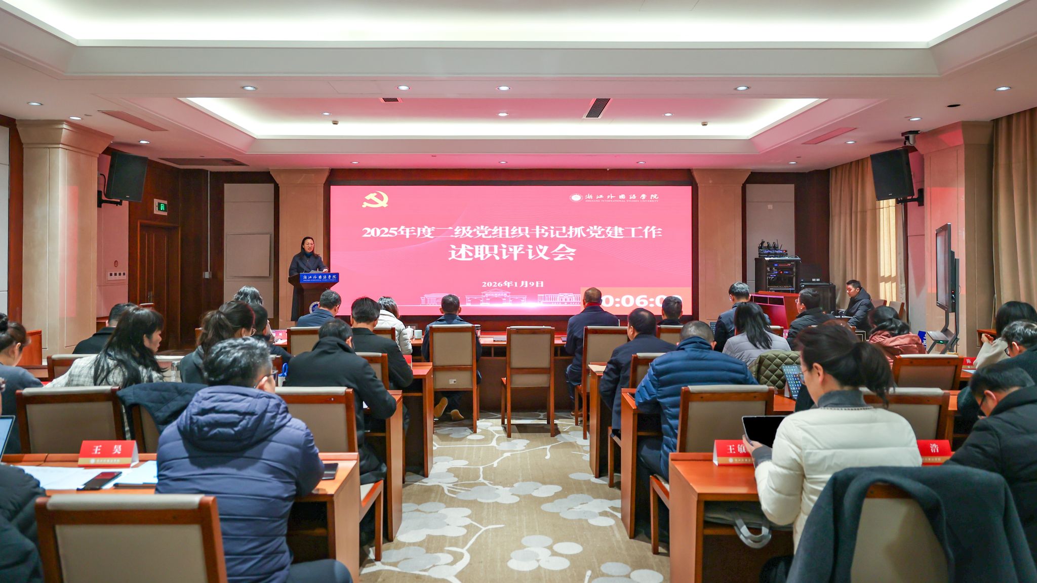 会上,13位二级学院(部)党组织书记依次述职,重点围绕贯彻落实习近平总书记重要指示批示和上级党委决策部署,保障推动高质量发展建设共同富裕示范区,加快学校“外语名校”建设,谋划学院“十五五”使命任务,落实基层党建、意识形态和党管人才工作重点任务等方面,汇报工作实绩,查摆分析问题,提出改进举措。各评委结合书面述职材料和现场述职情况进行现场评议。其他5个二级党组织进行了书面述职。