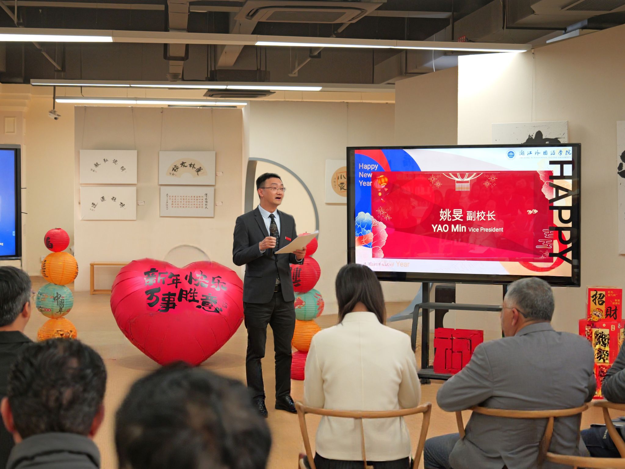 姚旻回顾了2025年外籍教师在本科教育教学审核评估、70周年校庆、跨文化交流、人才培养、学科建设等工作中的贡献。他指出,外籍教师是学校宝贵的海外智力资源,学校将持续做好服务保障,支持大家在浙外实现新发展。