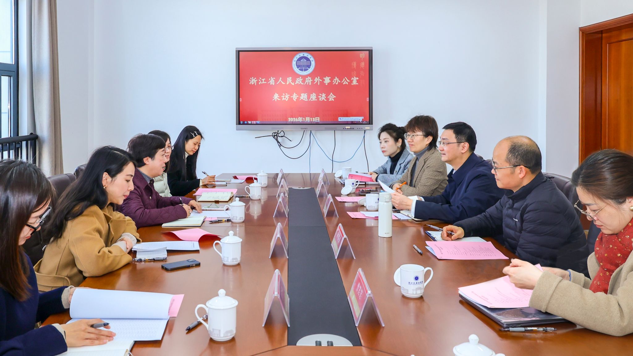1月13日,浙江省人民政府外事办公室副主任陈艳勤一行来校调研交流。副校长、党委委员姚旻出席座谈会。