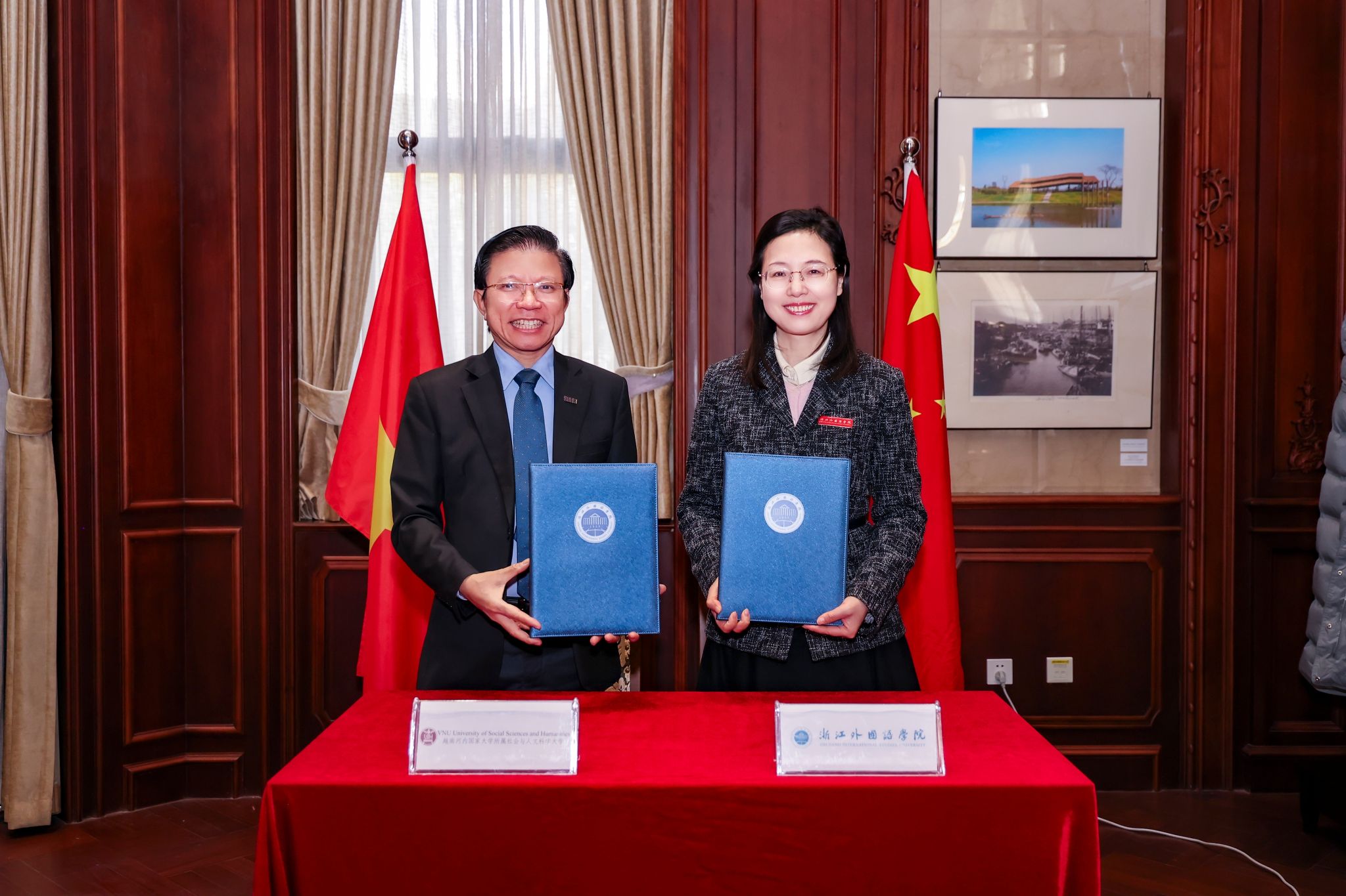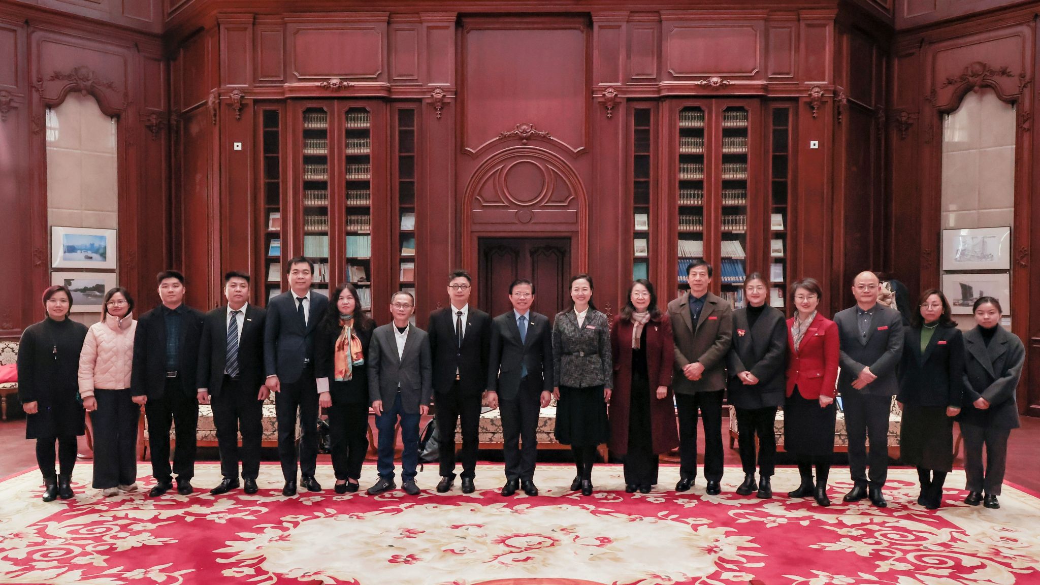 1月23日,越南河内国家大学所属社会与人文科学大学校长黄英俊一行到访浙外,校党委书记、校长张环宙出席见面会,副校长、党委委员柴改英主持座谈交流。