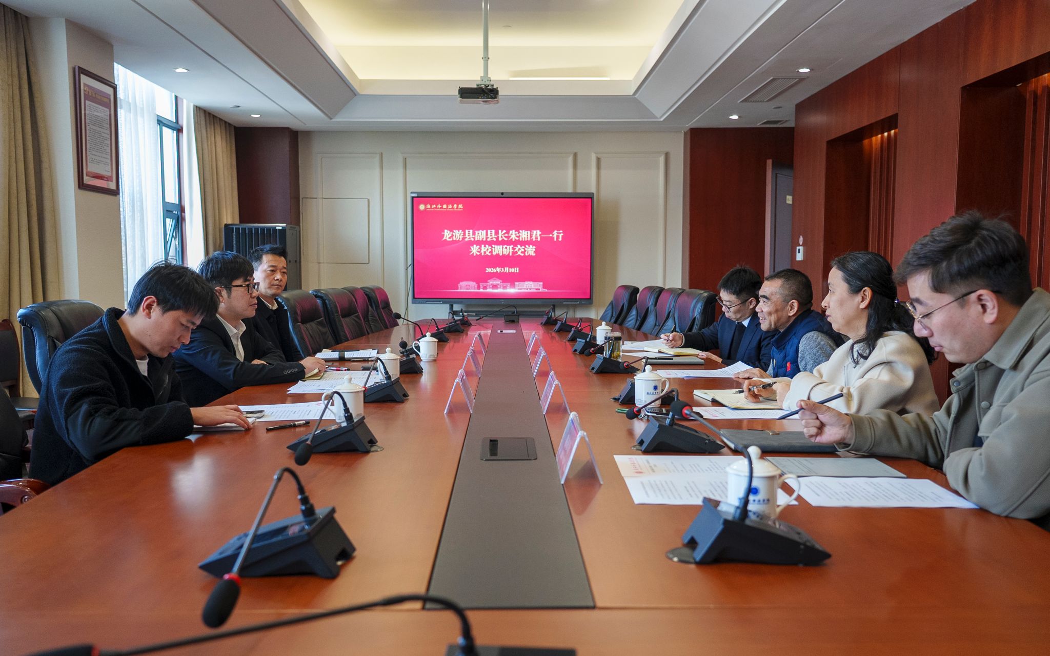 3月10日,衢州市龙游县委常委、副县长朱湘君一行来校开展结对帮扶调研座谈。校党委副书记严齐斌出席并主持会议。