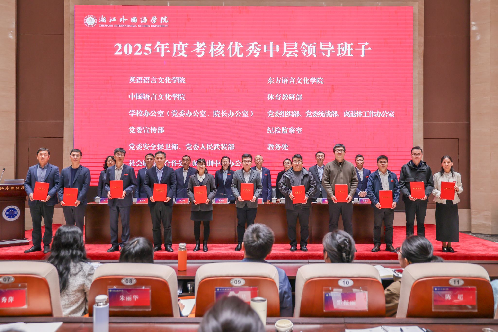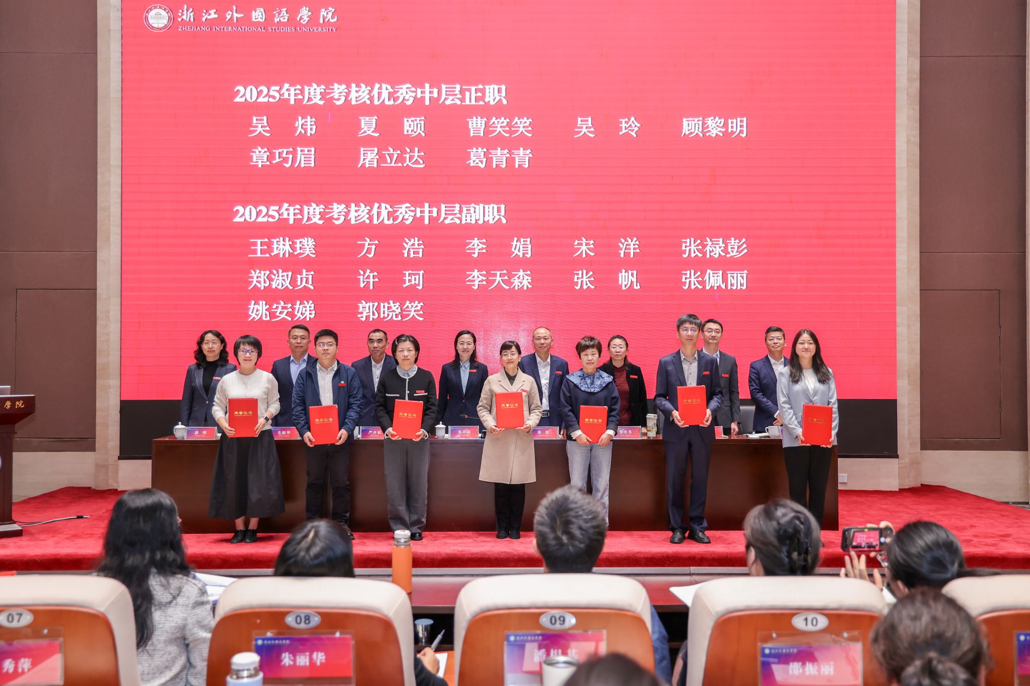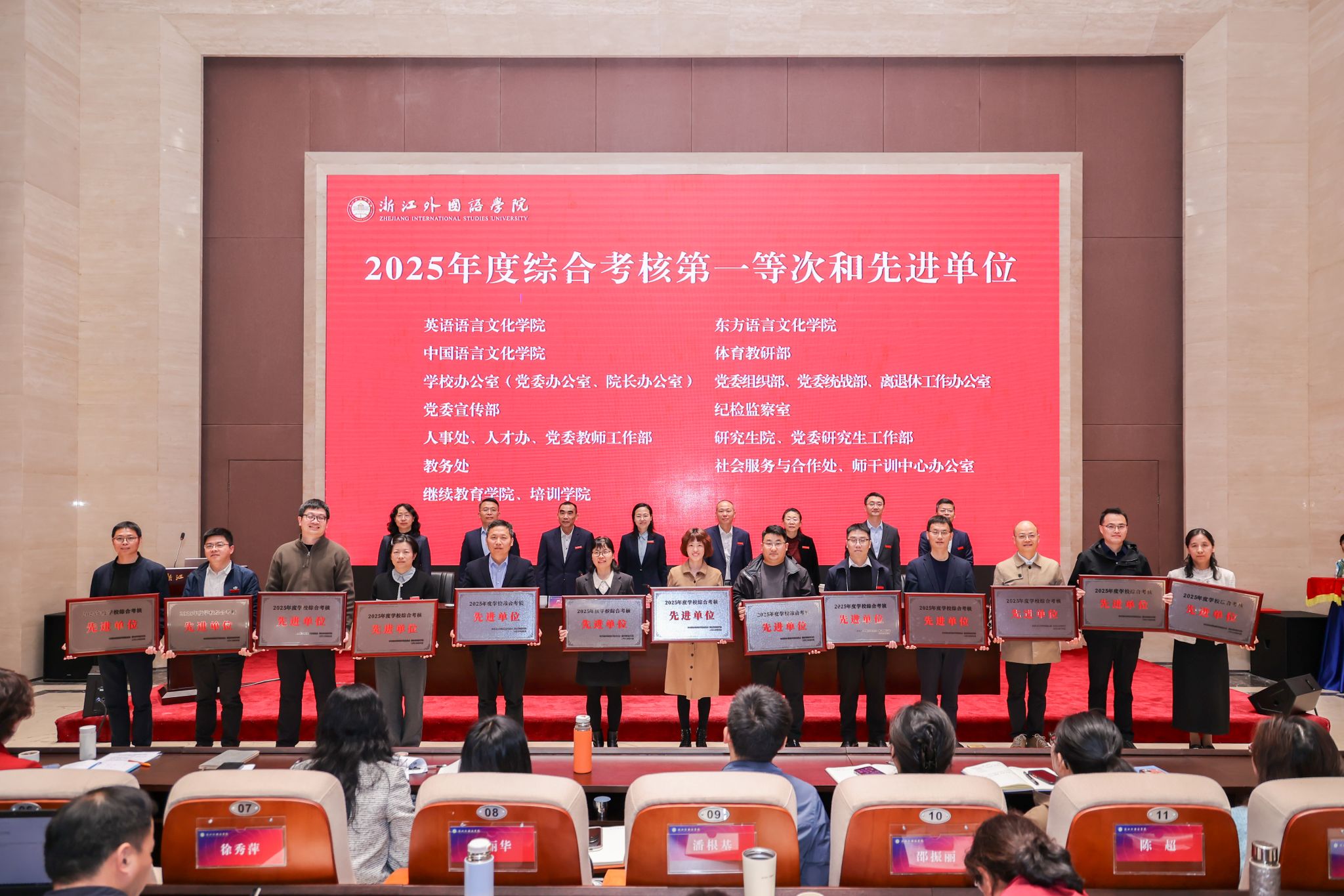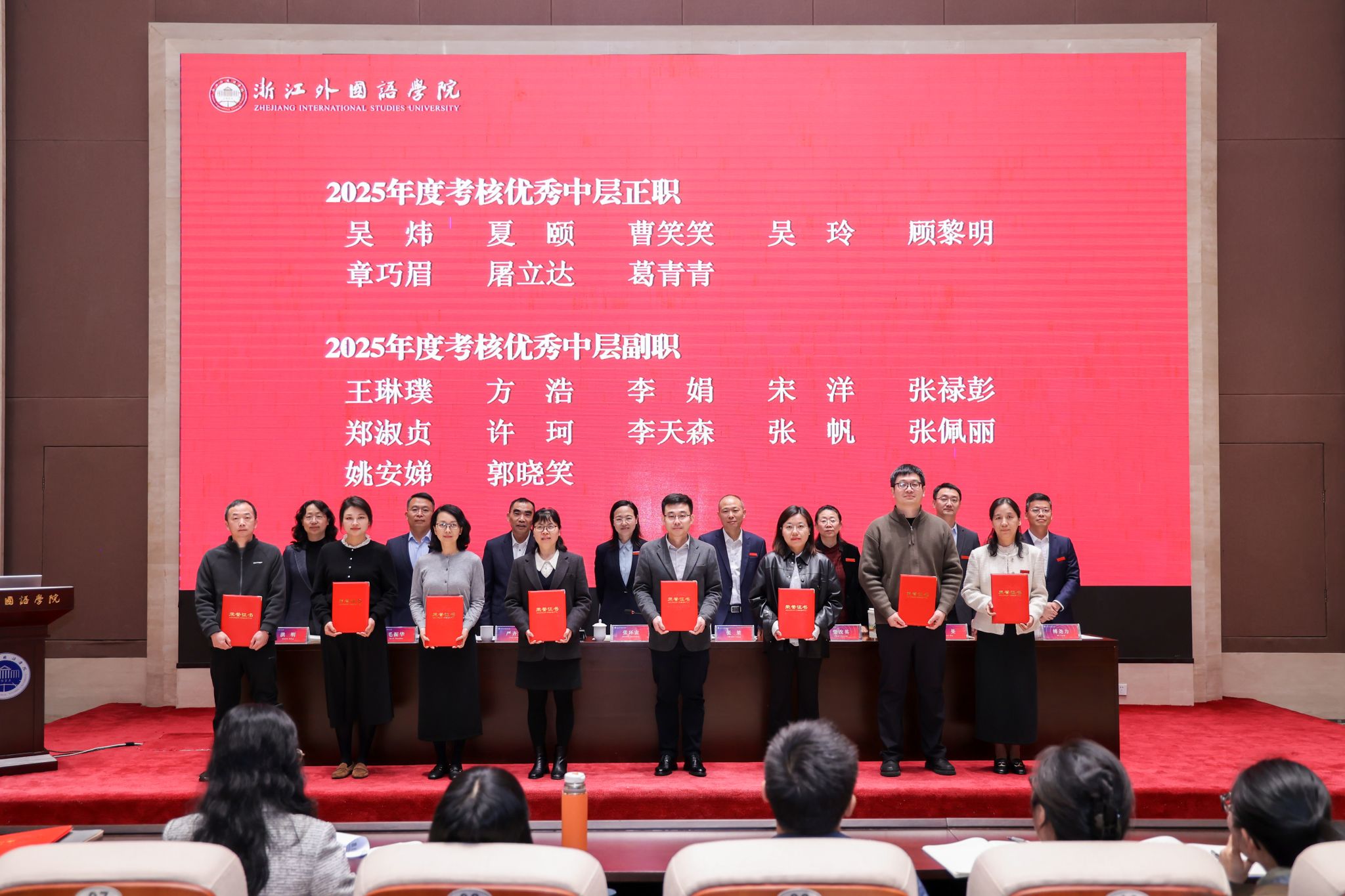 会上,校党委副书记严齐斌宣读了获评2025年度综合考核第一等次和先进单位、年度考核优秀中层领导班子和中层干部的名单。会议对获奖单位、中层领导班子和个人进行了表彰。