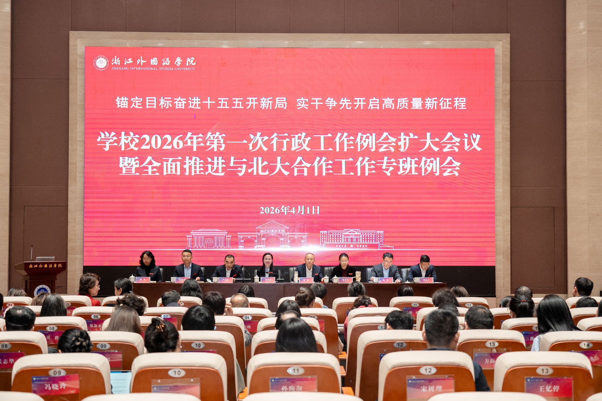 4月1日,学校召开2026年度第一次行政工作例会扩大会议暨全面推进与北大合作工作专班例会。会议聚焦“锚定目标奋进十五五开新局 实干争先开启高质量新征程”主题,解读“十五五”关键指标任务下达分解情况,汇报交流深化与北大合作的工作思路与举措。校党委书记、校长张环宙出席并讲话。副校长、党委委员张梁主持,校党政领导班子成员出席。