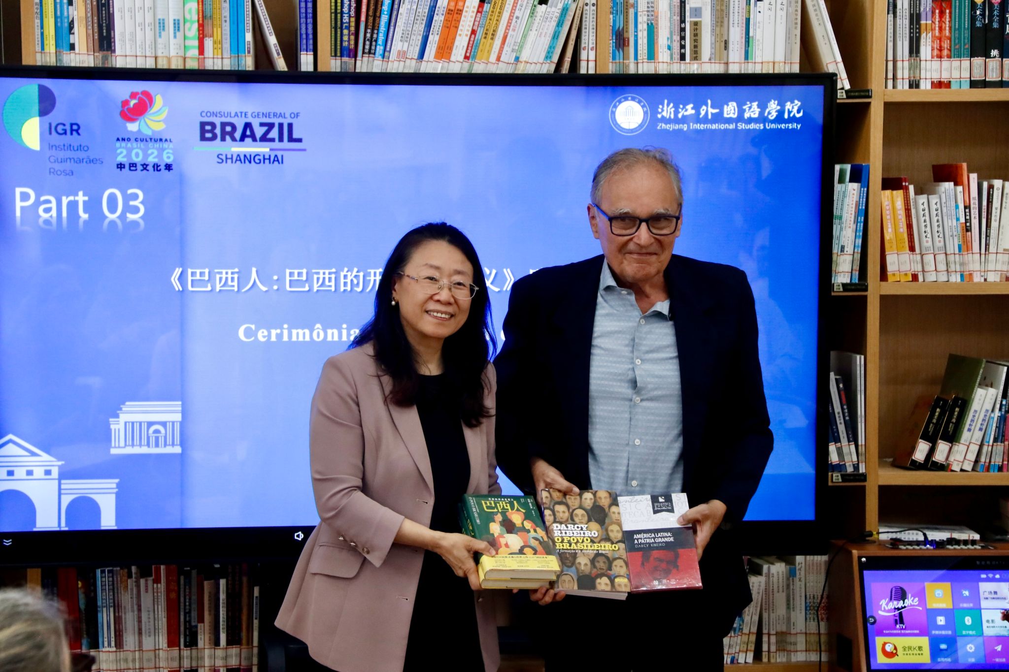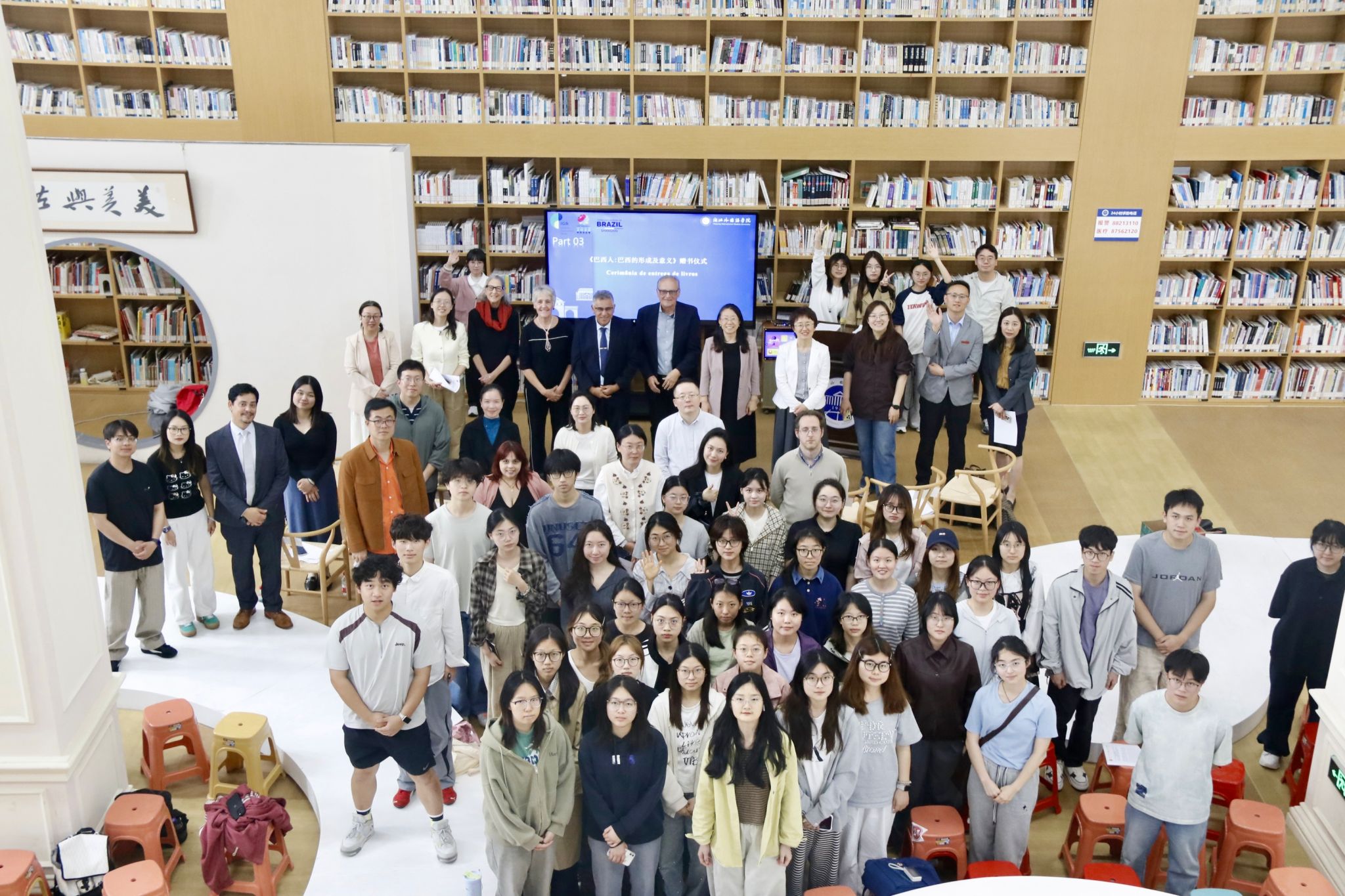 4 月 20 日,巴西达西・里贝罗基金会主席何塞・罗纳尔多、副主席吉塞尔・雅孔一行到访浙外,出席《巴西人:巴西的形成及意义》新书推介会暨中巴文明互鉴与巴西文化交流分享会。中国传媒大学巴西传播研究中心主任颜巧容、朝华出版社副总编辑李晨曦等参加活动。我校副校长、党委委员柴改英出席并致辞。