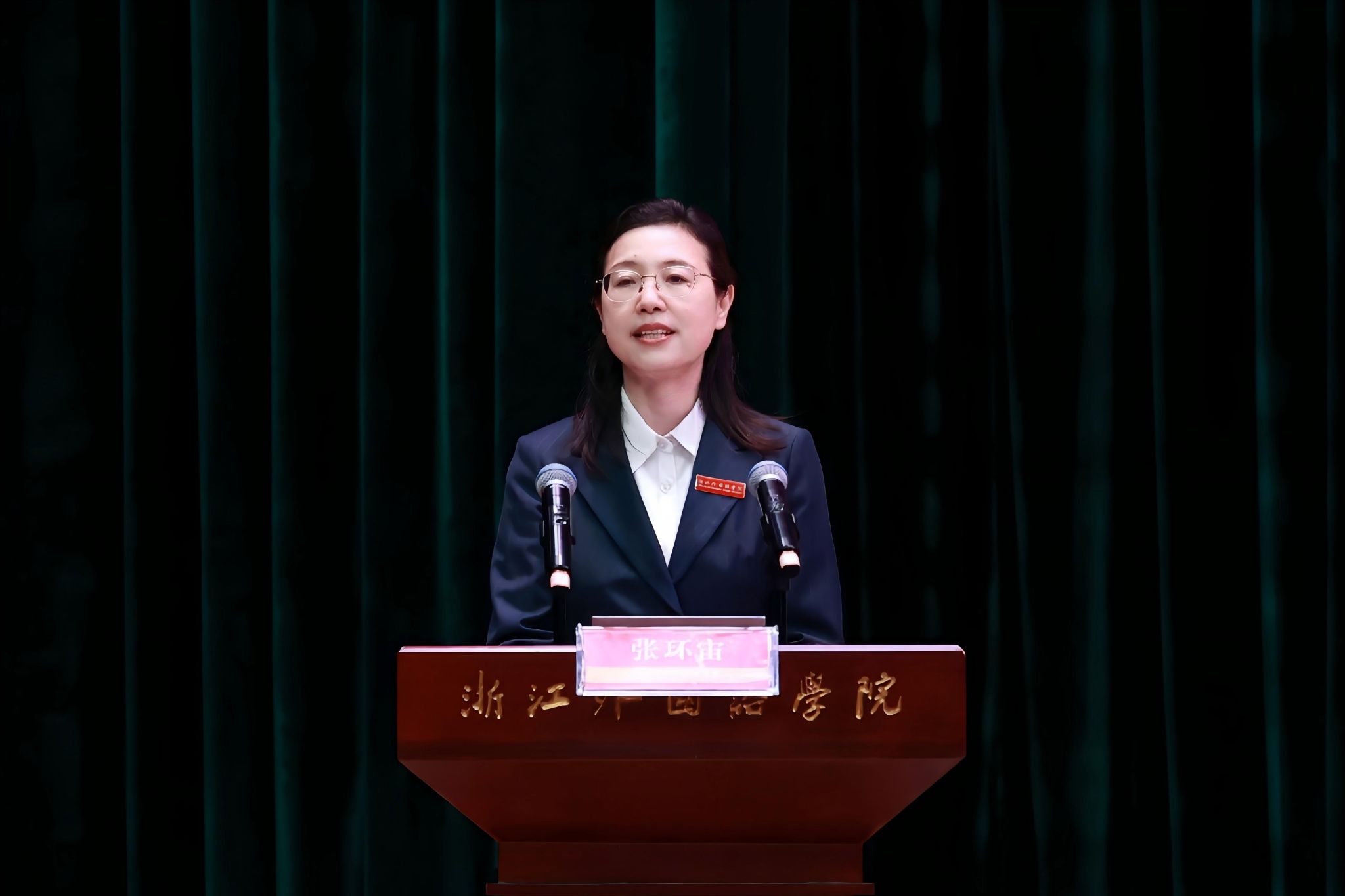 张环宙致欢迎辞。她指出,浙外作为省陶研会的发起单位之一、挂靠单位和主管单位,始终坚持把“学陶”“研陶”“践陶”贯穿人才培养全过程,通过课程建设、社团研学、实践支教、学术研究等举措,推动陶行知教育理念在校园落地生根、融入新时代教师教育实践。她希望以此次大会为契机,进一步凝聚共识、深化交流、协同创新,共同推动陶行知教育思想在新时代焕发新的生机与活力,为浙江教育高质量发展、办好人民满意的教育贡献智慧与力量。