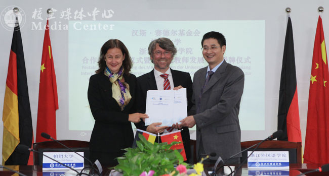 9月12日下午,校长洪岗教授会见了德国副校长乌苏拉•罗伊特纳教授和汉斯•赛德尔基金会负责人邵贝德博士等一行,并正式签署了三方合作协议。