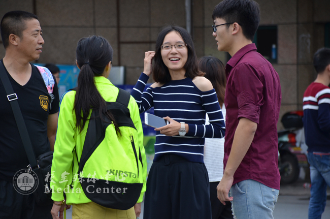 文三校区,副校长赵庆荣现场指导迎新工作。