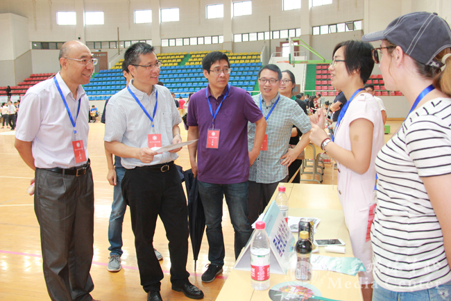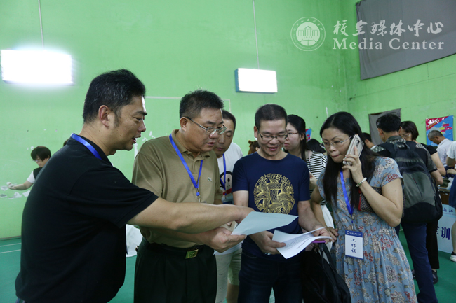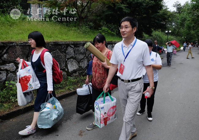 校党委书记宣勇、副书记赵伐,小和山高教园区管委会办公室主任陈雷在相关部门负责人的陪同下,来到行健馆新生报到注册处逐一查看各点位,询问各环节进展,详细了解新生报到情况。
