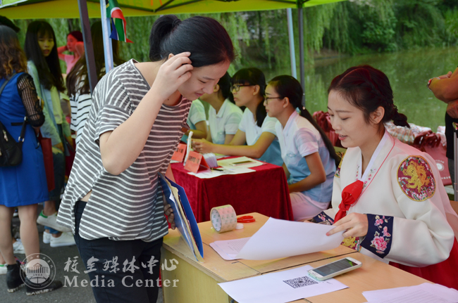 各学院都拿出最饱满的热情、用独具亮点的迎新服务欢迎新生。英文学院准备了“拍立得”,记录新生与学校的第一次合影;东语学院、西语学院、中文学院的志愿者们身着各具特色的民族服饰向新生们展示着学科专业的特点;商学院的迎新工作则体现了“点单服务”,新生可以选择自己最“中意”的志愿者做引导;教育学院设立了党员先锋岗,为新生解决难题;科技学院为新生准备了签名墙,对同学们进行第一次点到;艺术学院的志愿者们则在报到处演奏起了欢快的乐曲……