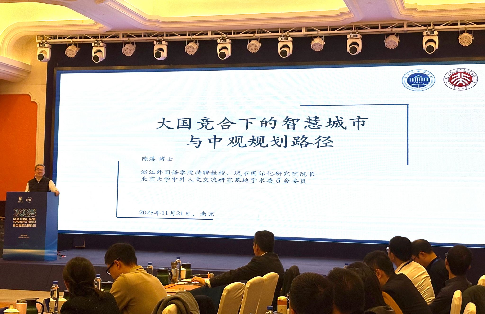 在“2025新型智库治理论坛”上,陈溪教授应邀参加平行论坛并作主题发言,分享全球智慧城市及太空基础设施评估的方法论,展示前沿交叉区域国别研究的学理结构及实施路径。