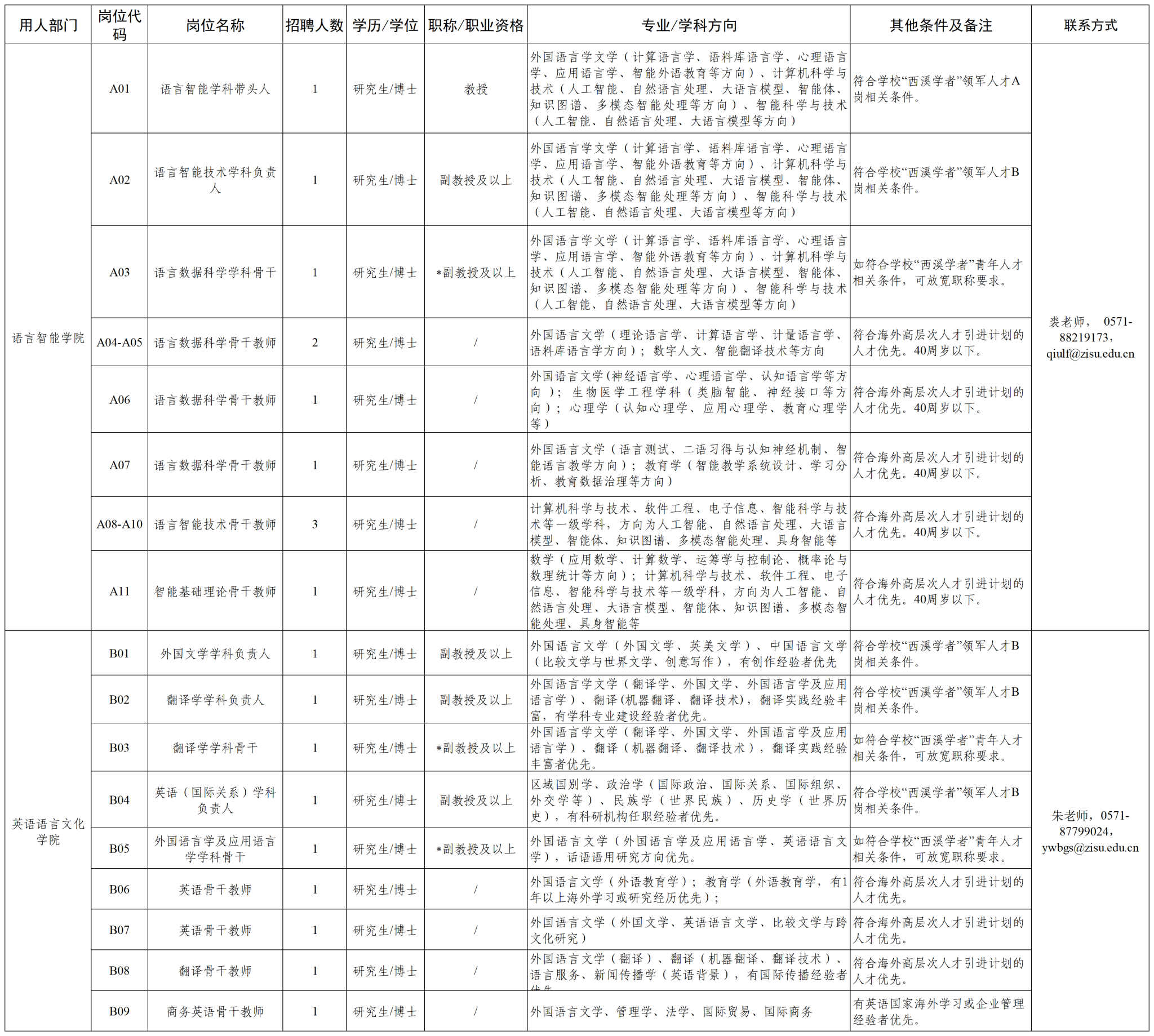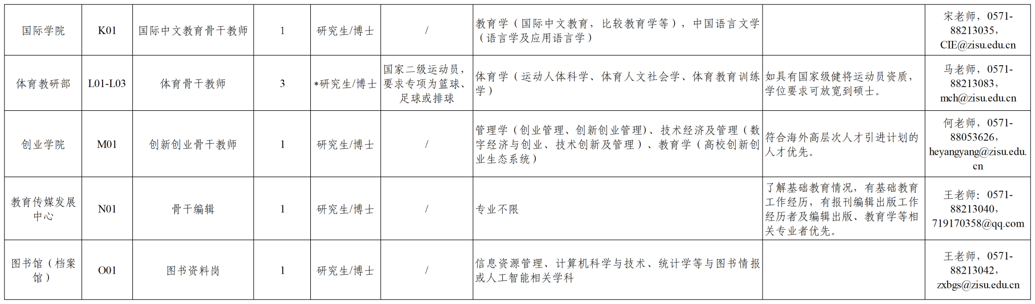 学校常年招聘各学科优秀人才,并欢迎依托我校申报各类国家、省市级人才项目。具体招聘岗位及条件如下。具体招聘岗位及要求以浙江省人力资源和社会保障网最终发布的信息为准。