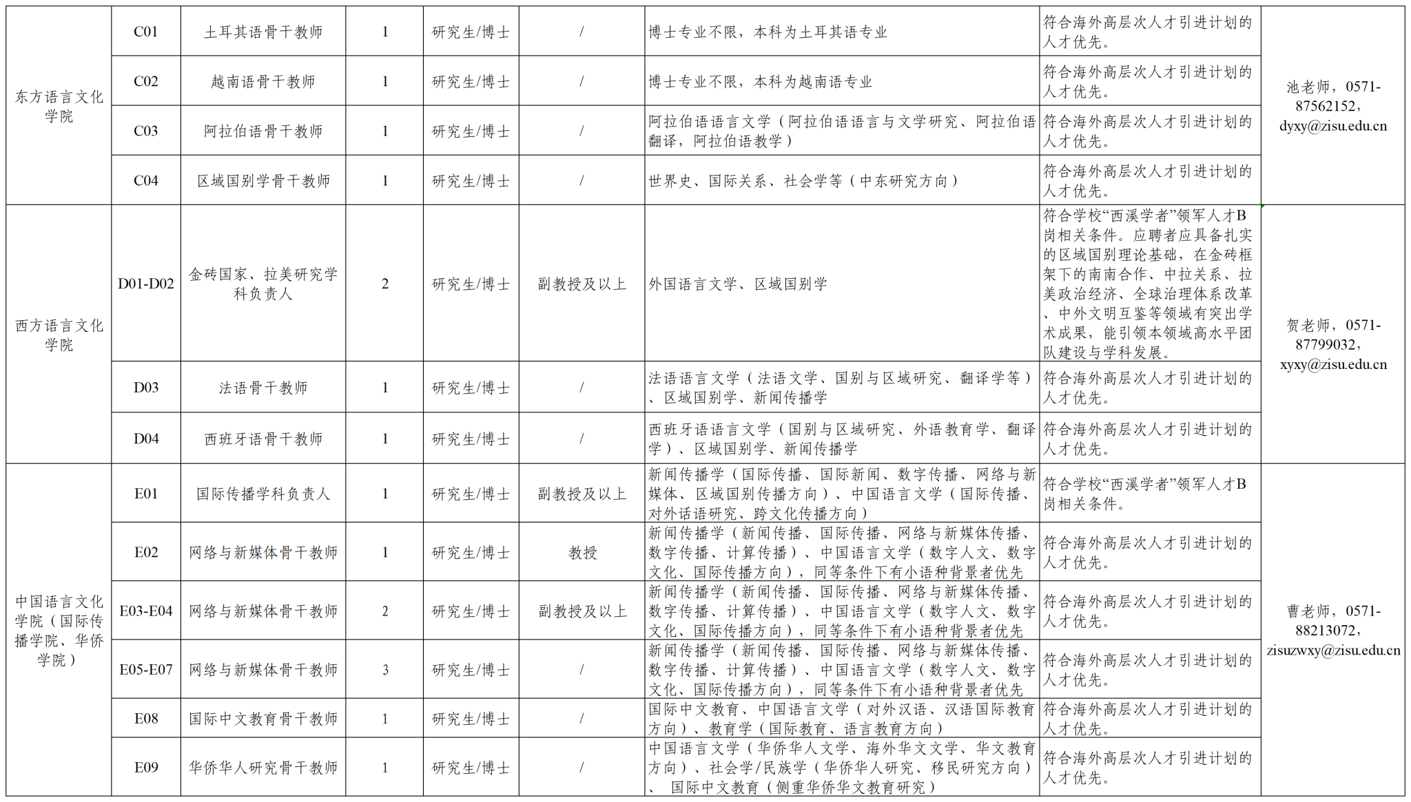 竭诚欢迎海内外英才加盟浙江外国语学院,共创名校未来!