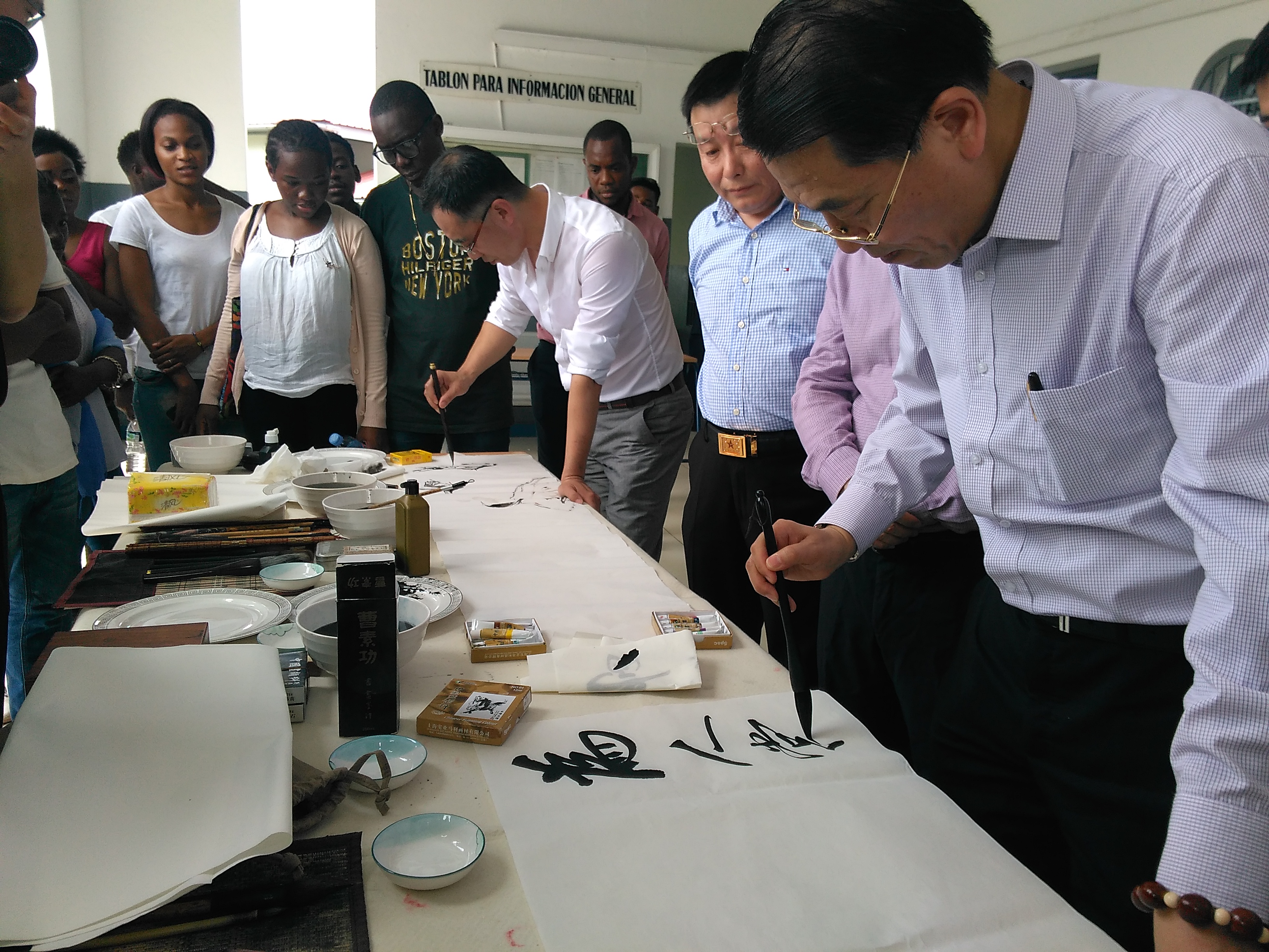 近日,赤几孔子学院举办“中国书画家走进赤几国立大学”书画艺术交流活动。中国书画家协会副主席毕晓民、张军平,中国书法家协会会员程茂全等五位书画家应邀与师生进行现场交流。