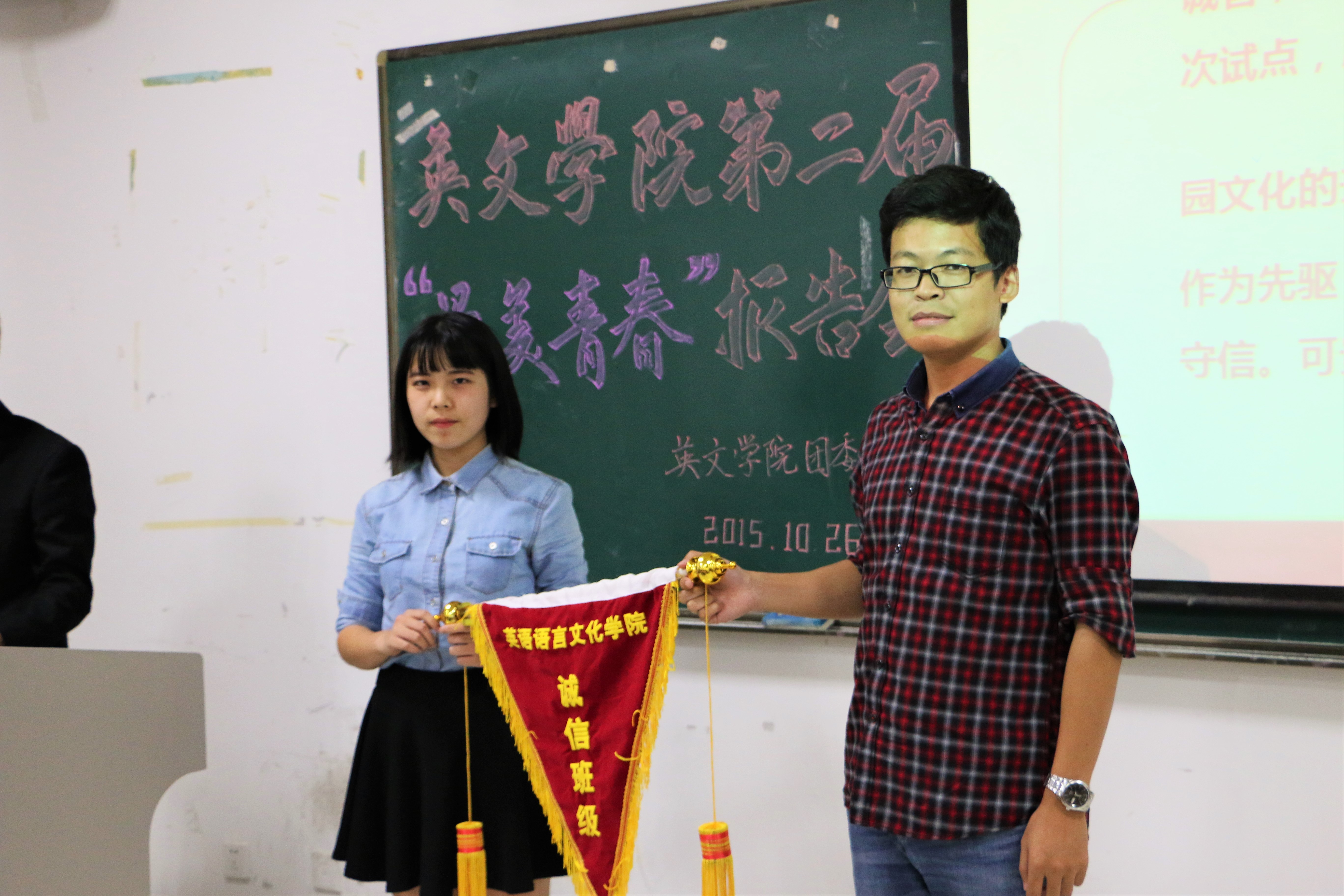 10月26日,英语语言文化学院举行第二届“最美青春”报告会,六位青春榜样分别围绕“乐学·坚持”“善言·才辩”“逐梦·创造”“热忱·奉献”“通达·持度”“践德·诚信”等6个篇章作了精彩报告。