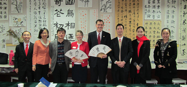 11月25日,美国威斯康辛大学河城校区迪安•范盖伦校长、国际部卡琪娜•拉森主任一行来我校教育科学学院洽谈相关合作项目。国际合作交流处、教育科学学院负责人及相关教师参加了座谈会。