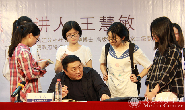 5月12日晚,人民日报浙江分社社长王慧敏教授做客德雅讲堂,以“耐住寂寞才会赢”为题作精彩报告。报告会后,王慧敏与我校青年学子作了亲切交流。