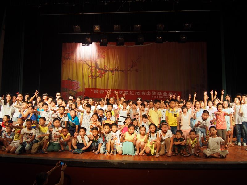 最后一天,“微霖”英语支教汇报演出暨毕业典礼在镇文化中心举行。整个礼堂被村民挤得水泄不通。孩子们个个精神抖擞,将平日精心演练的英语舞台剧和英语朗诵搬上了舞台,赢得了观众的阵阵喝彩。这不仅是本次支教活动的成果展示,还是孩子们自我展现的舞台。至此,支教活动画上了一个完美的句号。孩子和家长们的一句句“明年再来”是对微霖团队最好的肯定。