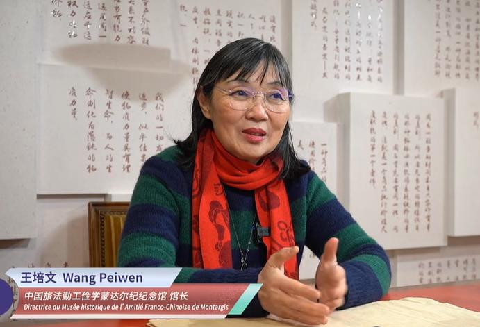 王培文以线上VR观展方式,带领师生云游蒙达尔纪纪念馆“时代呼唤” “探求真理” “东方栋梁” “友谊常青”四个展区,深情讲述周恩来、邓小平、蔡和森等革命先辈20世纪20年代旅法勤工俭学、探寻救国道路的奋斗历程。她还展示了馆内珍藏的红色史料,生动还原历史场景,勉励新时代大学生尤其是语言专业学生,深入思考自身的责任与使命。