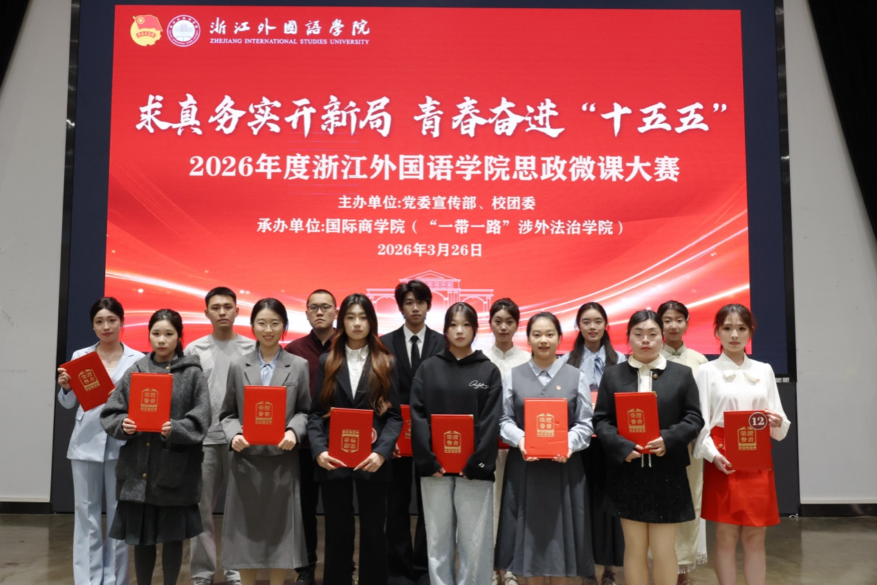 教师组选手以“小故事”讲活“大道理”,让思政微课充盈青年味、彰显时代感。东语学院苏宣丞结合父子两代人的从戎经历,深情讲述了守边初心,传递保家卫国的赤诚担当;中文学院苏星分享了自身国际交流经历,引导师生们要厚植文化自信、凝聚民族力量;马克思主义学院胡子恒溯源家国根脉,深入诠释“中国与中国梦”的内涵;商学院唐志豪以安吉“村咖”为切入点,生动解读“两山”理论的实践成果;教育学院王一博以“三枚扣子”为喻,讲述了浙商脚踏实地、奋勇争先的实干精神;西语学院王雨默回望留学法国的奋斗历程,践行“小我融入大我”的青春誓言;艺术学院邱雪琳从游客视角聚焦安吉生态蝶变,讲述生态优先、共同富裕的生动故事;文旅学院吴嘉斌结合百年党史中的青春榜样,呼吁新时代青年传承红船精神、扛起家国担当。