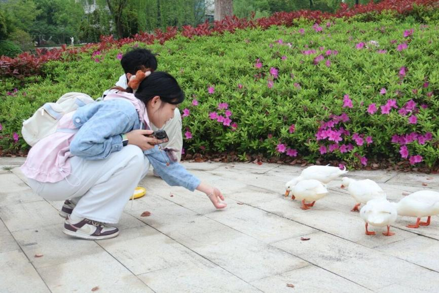 校园里的“鸭学长”“鹅学妹”向来是同学们课余时光里的治愈担当,本次体验活动专门开设了校园鸭群喂养岗,同学们仔细投喂,耐心守护。“这让我们走出教室、寝室,在实践中体会劳动的价值,既培养对自然的敬畏,也获得了内心的平静。”2024级法语专业的徐毕涛说。