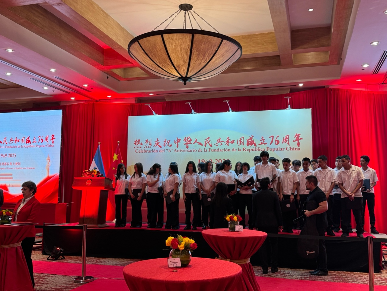 9月25日,洪都拉斯孔院首任中方院长戚钟辰与外方院长共同出席中国驻洪都拉斯使馆国庆招待会。洪国会主席、副总统等政要及各界代表300余人参加。中方院长在交流中表示,孔院作为中拉命运共同体的生动体现,将坚持开门办学、扎根当地,以公民教育为起点,推动学术化、本土化、国际化发展,为洪都拉斯青年提供新视野,助力中洪友谊与合作不断深化。